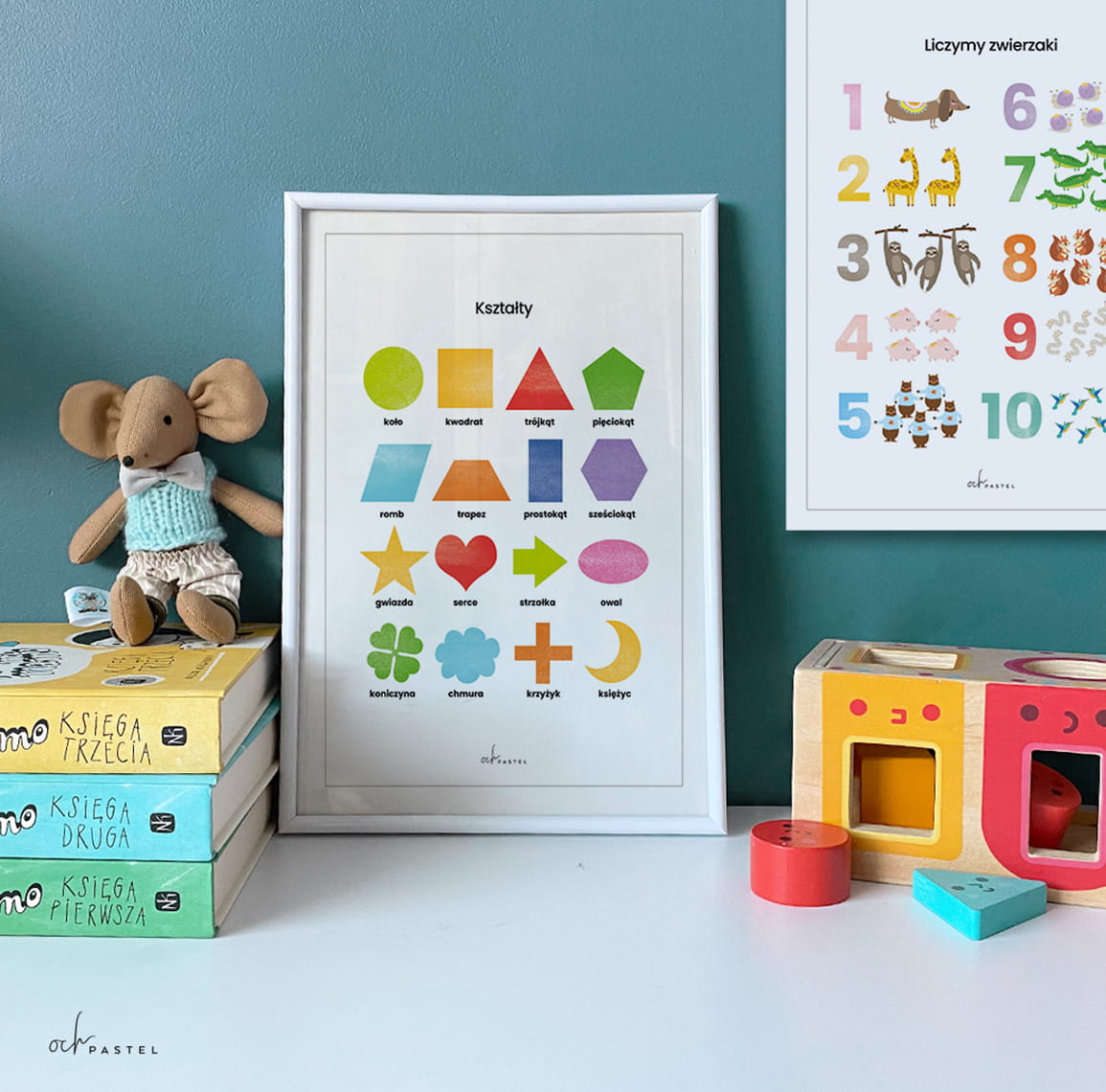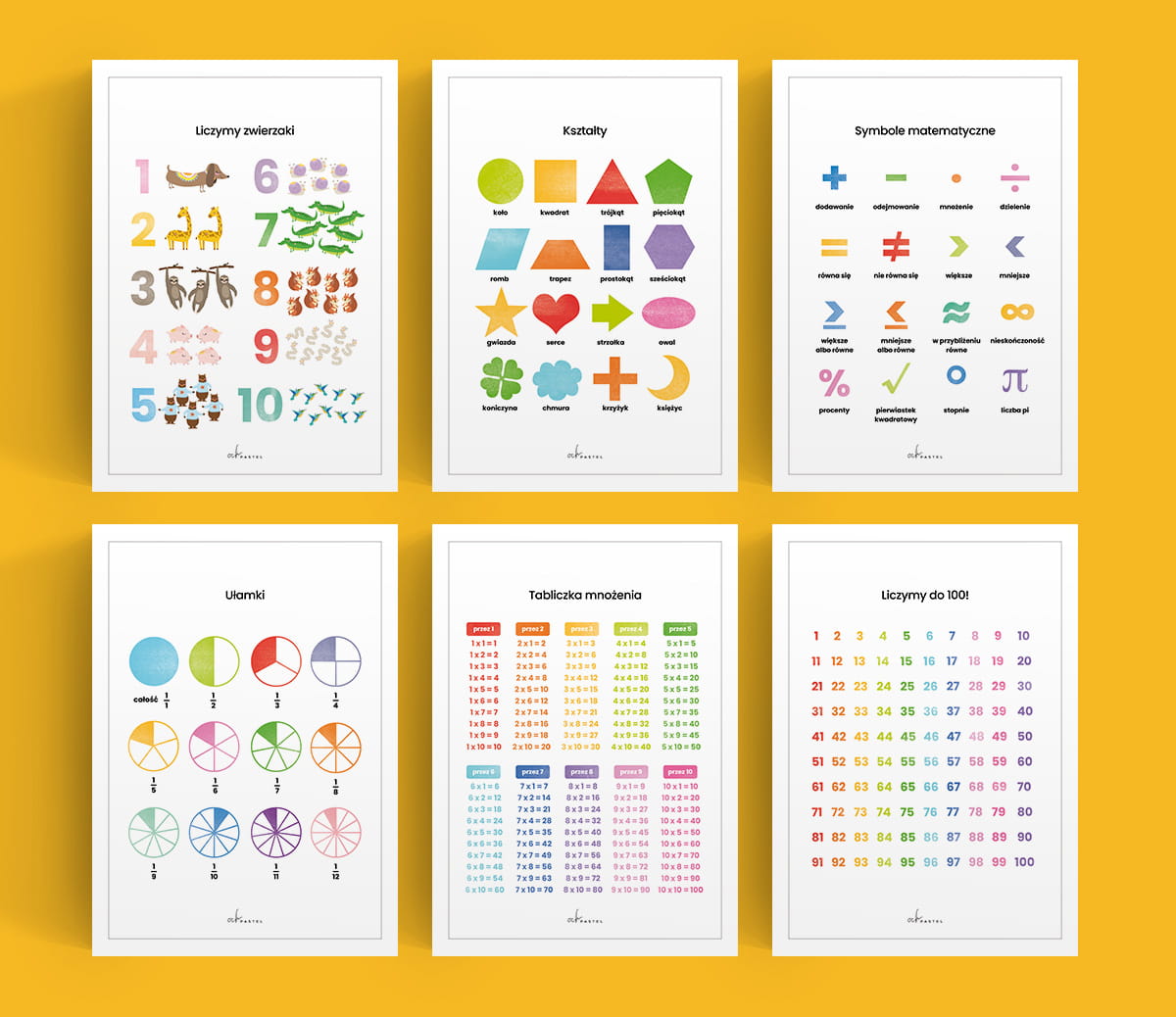 Dzieciństwo to okres ciągłej nauki, naśladownictwa i zabawy. Wie to każdy rodzic. Do każdej rozrywki warto przemycić odrobinę czegoś, co zostanie z naszymi pociechami na dłużej. Na pięknym plakacie edukacyjnym mogą znaleźć się zwierzątka w różnej liczbie po to, by móc je policzyć. Dzieci kochają zapamiętywać, dlatego z taką radością krzyczą różne nazwy i imiona. Z tą samą radością będą też wymieniać kolejne miesiące w roku, czy symbole kojarzące się z pogodą. Pierwszy alfabet, liczby czy kształty. W pewnym momencie przyjdzie też pora na trudniejsze rzeczy – naukę matematyki. I tu na plakatach znajdziecie ułamki i tabliczkę mnożenia. A i ta może być dla nas fajną ściągą z pokoju naszego dziecka.