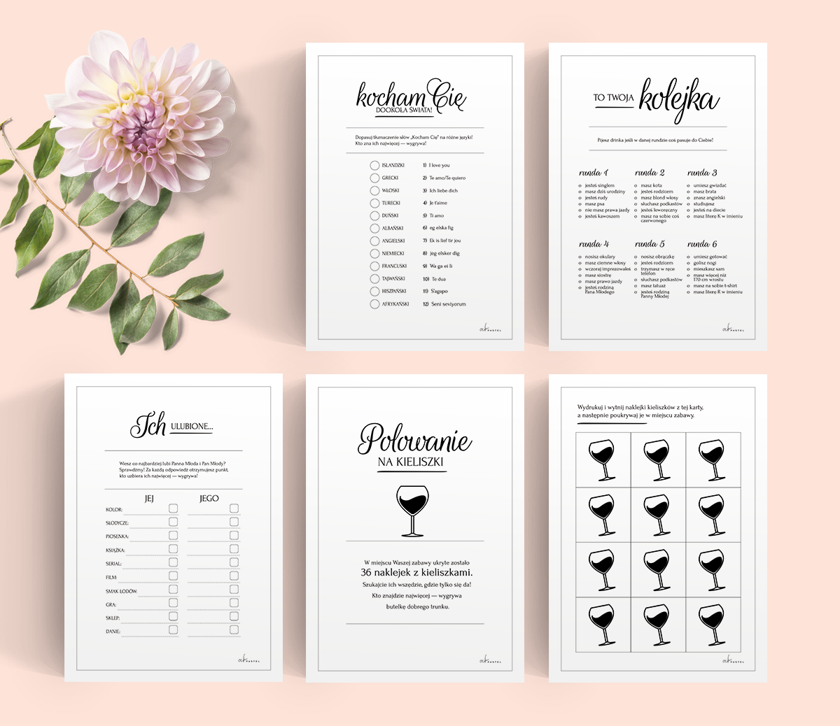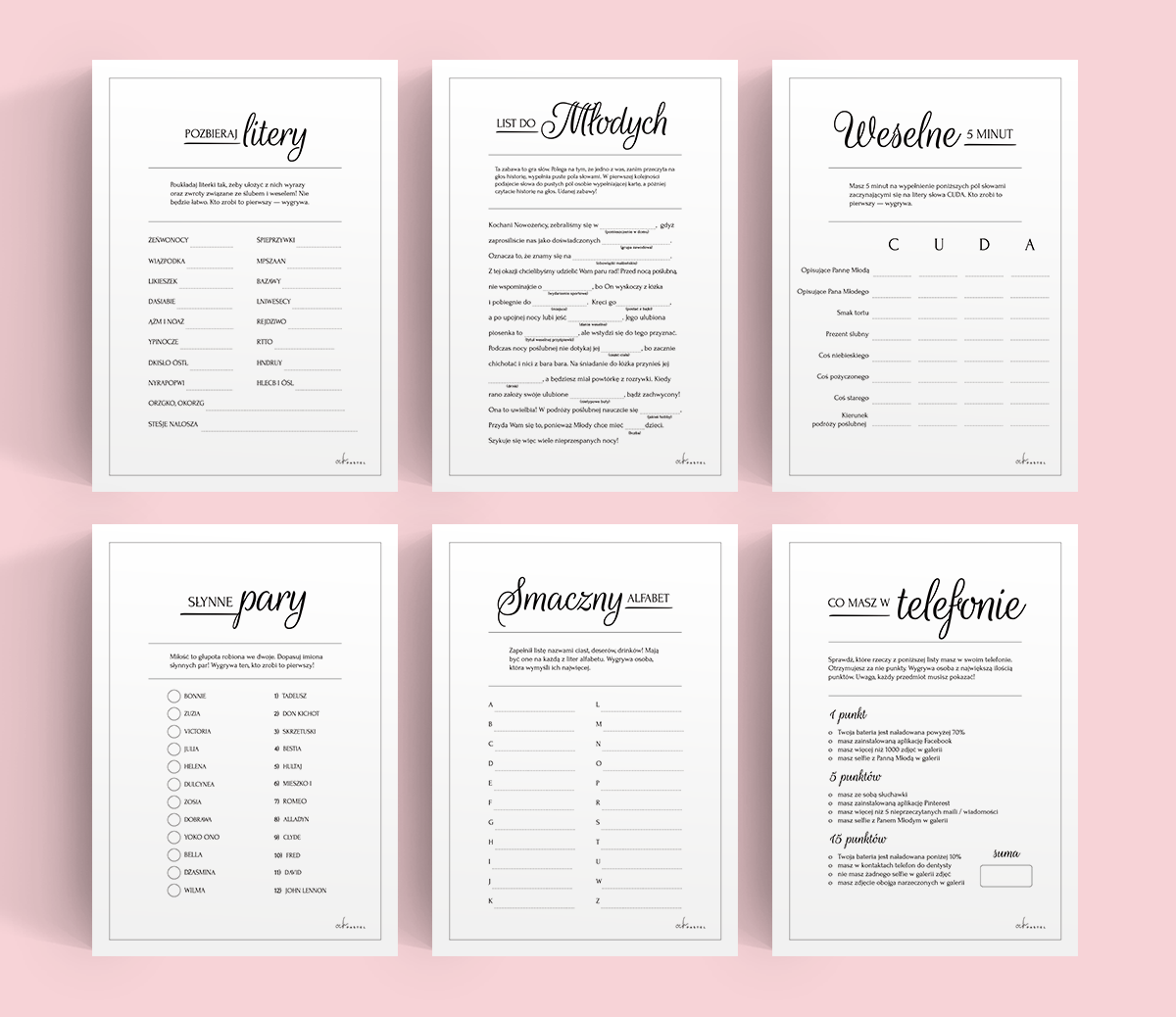 16 GIER DO DRUKU NA WESELE — PLIK PDF to grafiki w formie cyfrowej do pobrania z linku. Po zakupie otrzymasz link do pliku z plikim PDF, zawierającym 23 strony formatu A4. Plik jest gotowy do druku. Można go samodzielnie wydrukować na domowej drukarce lub zrealizować wydruk w punkcie ksero lub drukarni.