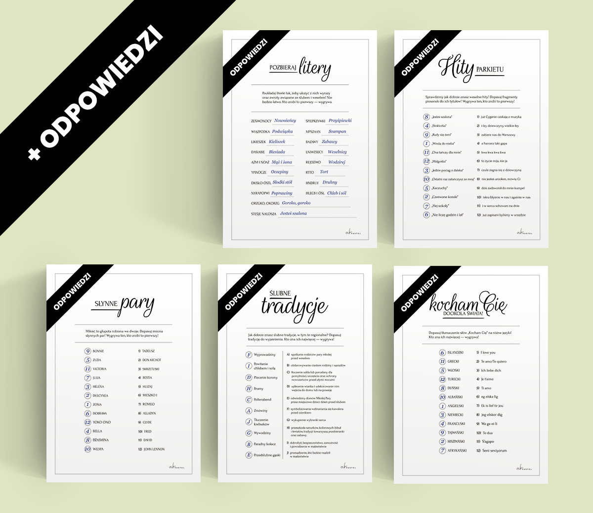 Najlepsza, najzabawniejsza i wysoko oceniana kolekcja gier na wesele do samodzielnego wydrukowania! Idealne zabawy integracyjne dla gości weselnych. Ubaw do łez gwarantowany! Bawcie się dobrze!