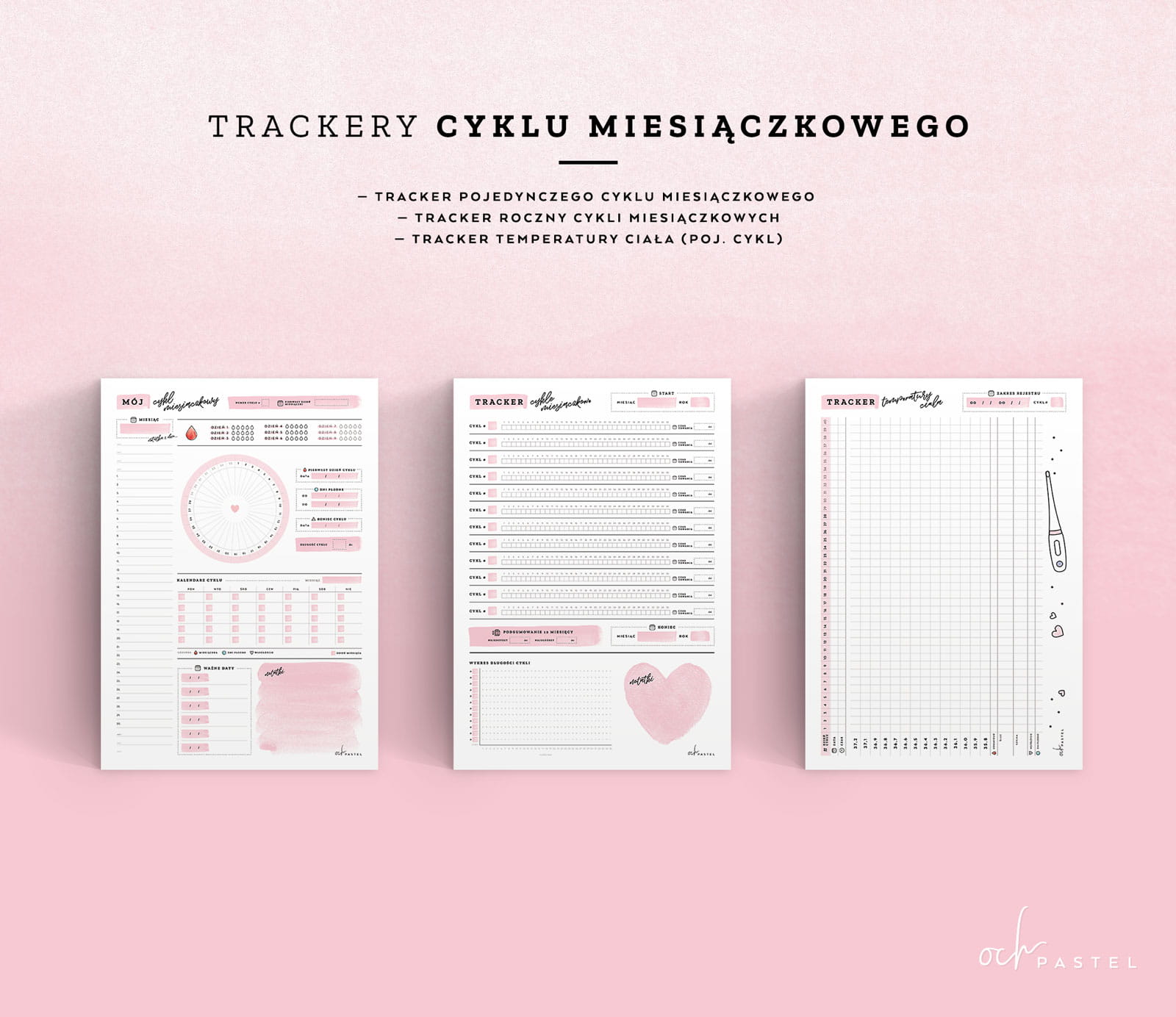 - 1 x tracker śledzenia pojedynczego cyklu miesiączkowego