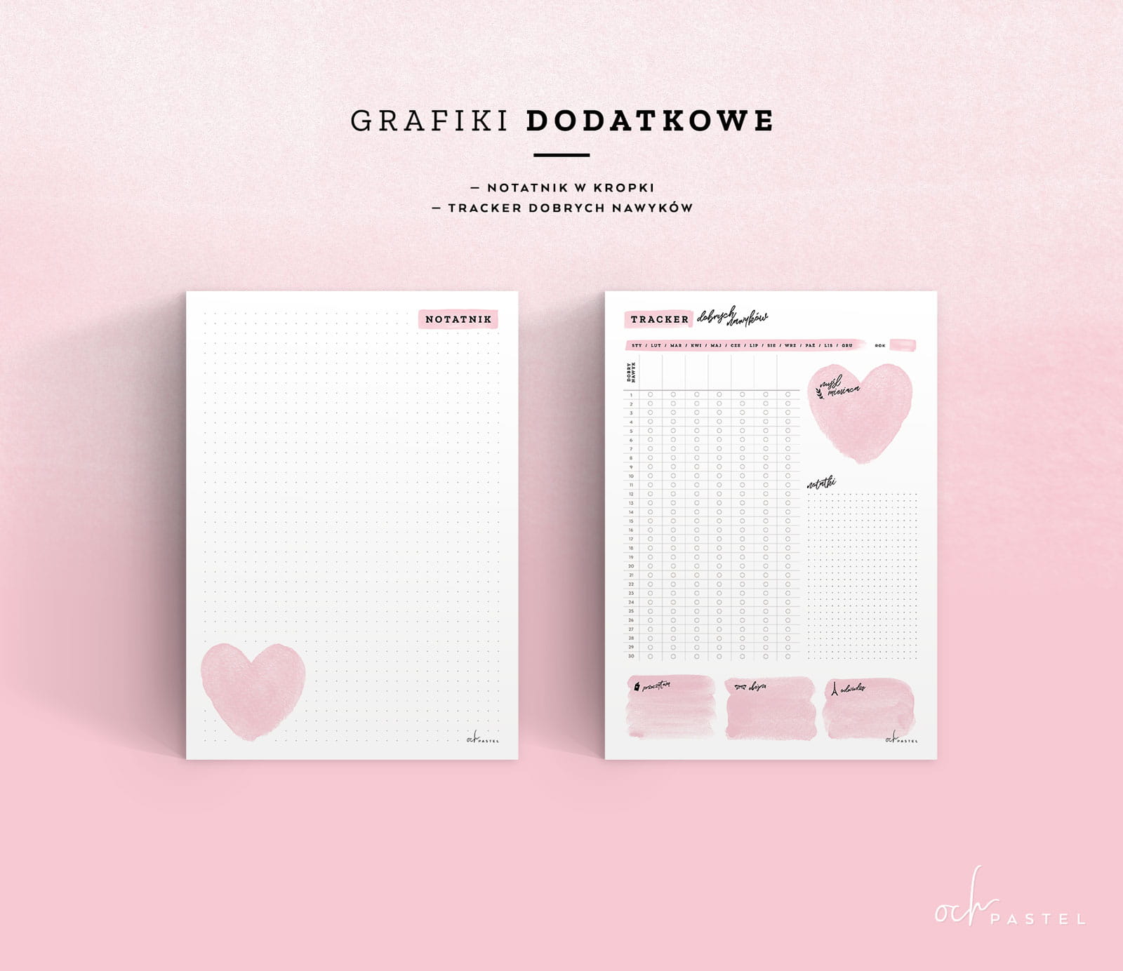 Projektując och sekretnik, przeniosłam z mojego Bullet Journala tabele i najlepsze rozwiązania, które sprawdzały się u mnie praktyce. Paczka zawiera jeszcze inne inspirujące szablony oraz plakaty, a dzięki spójnie zaprojektowanej całości, możecie stworzyć organizer dopasowany do siebie i swoich potrzeb.