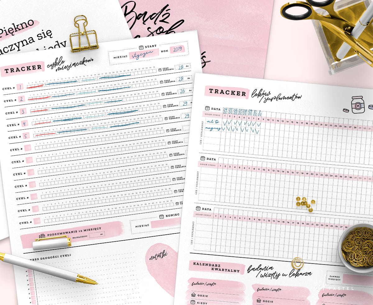 - 1 x roczny tracker śledzenia cykli miesiączkowych
