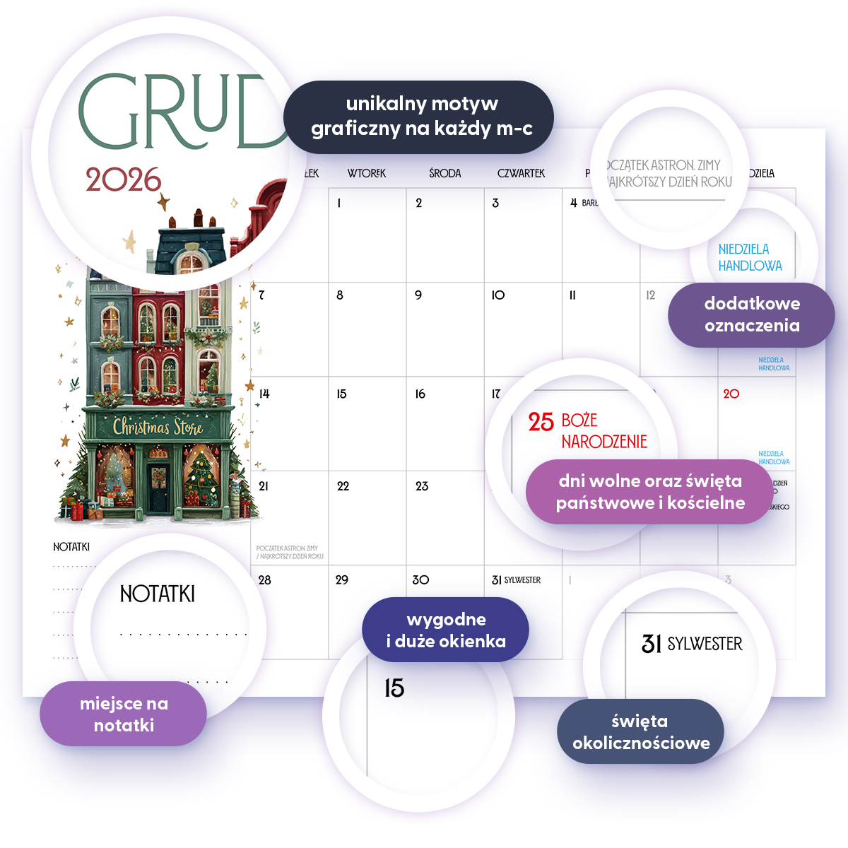✓ miejsce na notatki przy każdym miesiącu