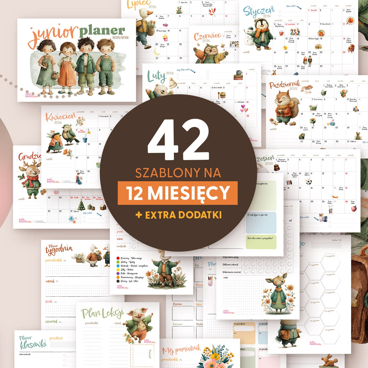 Junior planer szkolny 2025-2026 – plik pdf do druku to grafiki w formie cyfrowej do pobrania z linku. Po zakupie otrzymasz mailem link do pliku PDF, zawierającym 42 strony formatu A4. Plik jest gotowy do druku. Można go samodzielnie wydrukować na domowej drukarce lub zrealizować wydruk w punkcie ksero lub drukarni.